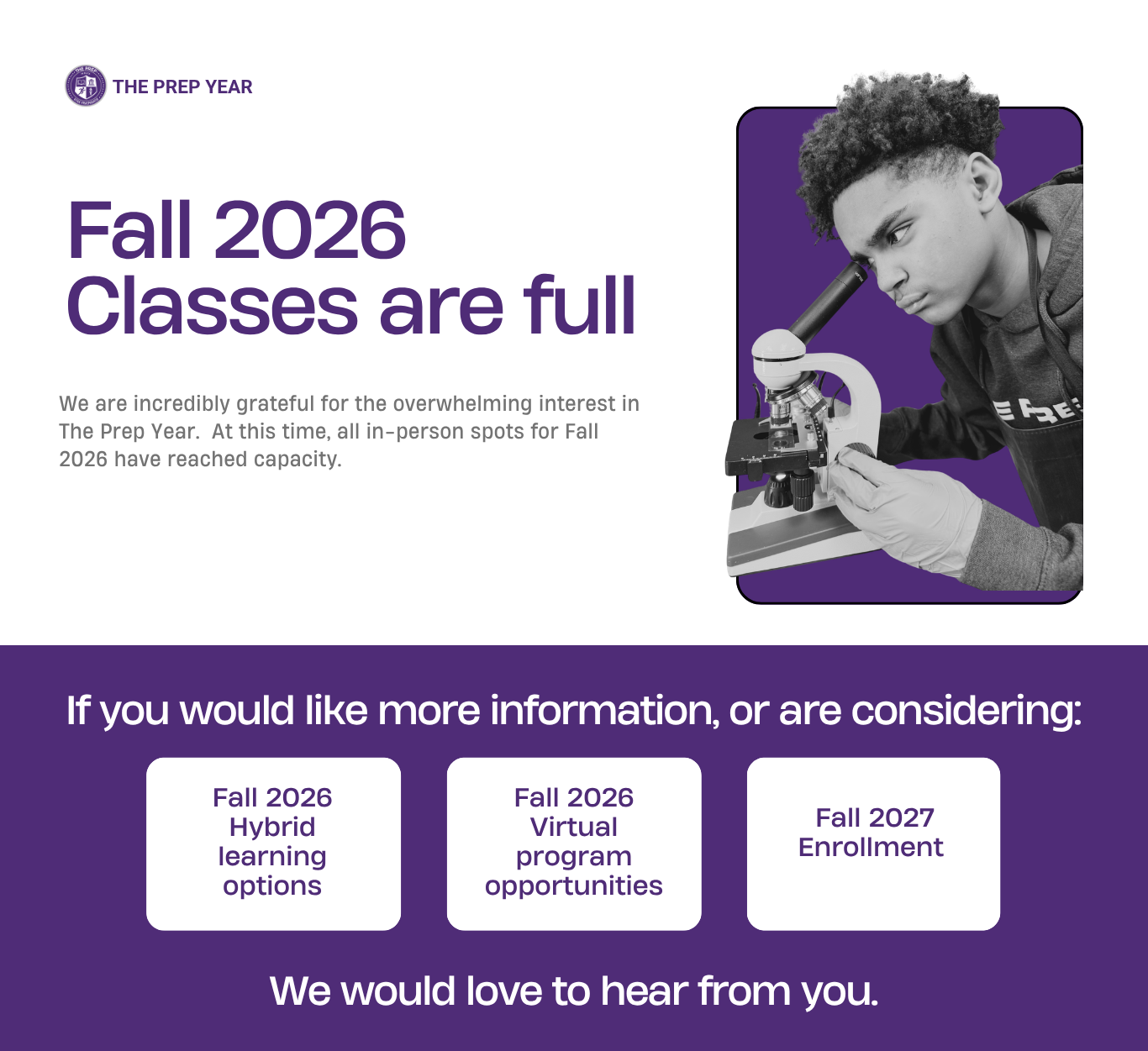 Schedule an informational call with Prep Director Jeff Morris